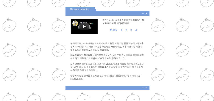 본 페이지에 carrd.co라는 페이지 사이트의 편집 시 참고할 만한 기능이나 정보를 정리해 두었습니다. 해당 사이트를 프로필로 사용하시는, 혹은 사용하실 의향이 있는 드림러 분들께 도움이 되길 바랍니다.