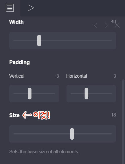 이것으로 사이트의 모든 요소의 크기를 조절할 수 있습니다. 전체적으로 모든 게 크다 싶을 때 이거 하나만 줄여주면 개별 요소의 크기를 일일이 줄여 주는 노가다를 거칠 필요가 없습니다.